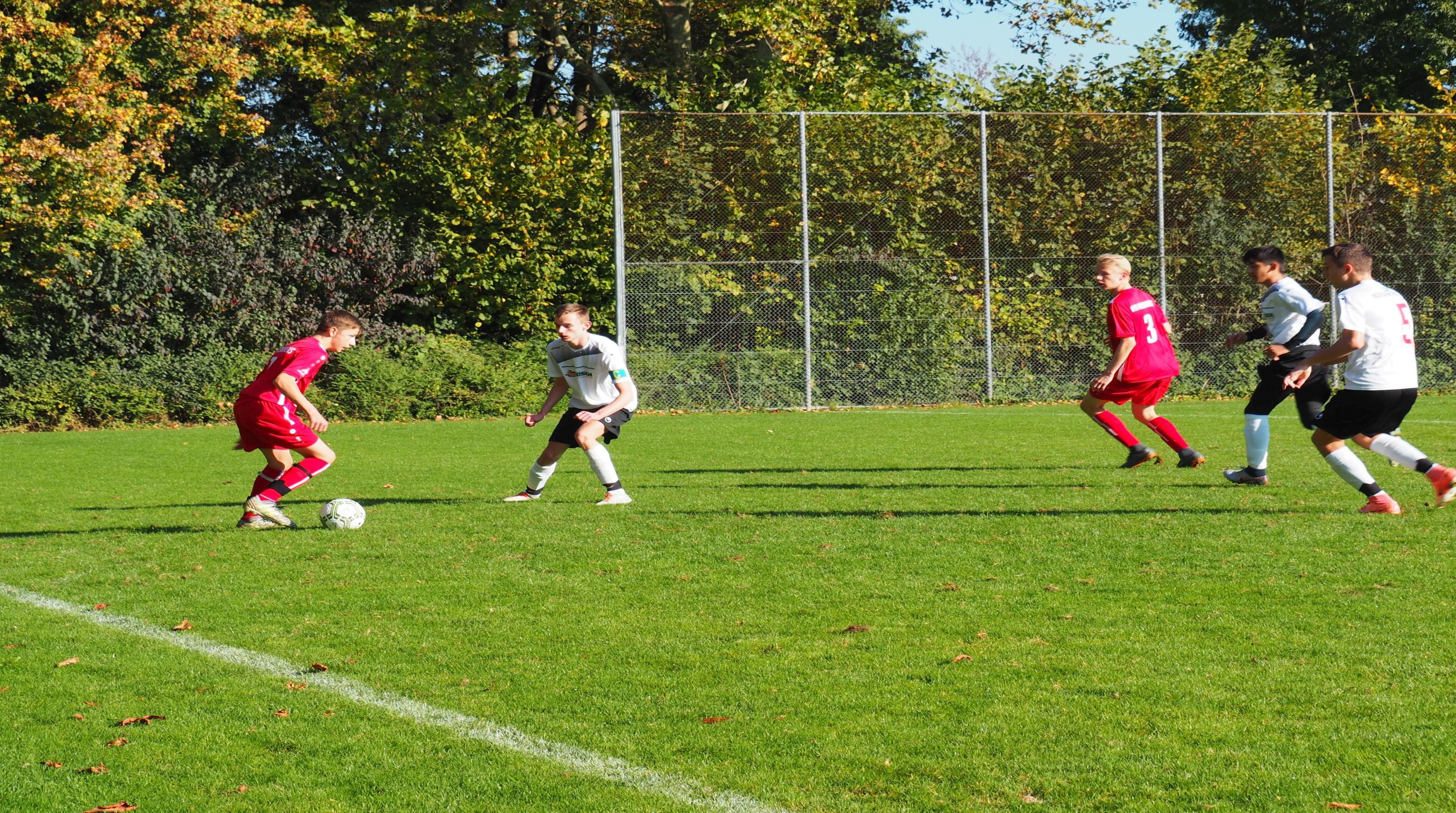 Den Schwung der Sommerhitze im Oktober brachte unser Team auch auf den gut gepflegten aber ungewohnten Ingersheimer Naturrasen. Trotzdem ließ der VfB keine Zweifel über den Spielausgang aufkommen. Bereits beim zweiten ernsthaften Angriff eröffnete Flo Noller den Torreigen. Kurz darauf legte Florian für Luca und dann zweimal Philipp auf, die den Ball locker einnetzten. Dann stabilisierten die Gastgeber jedoch ihre Abwehr, kassierten keinen weiteren Treffer und schafften sogar ein schönes Freistoßtor, präzise in den Winkel platziert. Trotzdem ärgerte sich Torhüter Jona – war es doch das bisher einzige Gegentor der Saison.