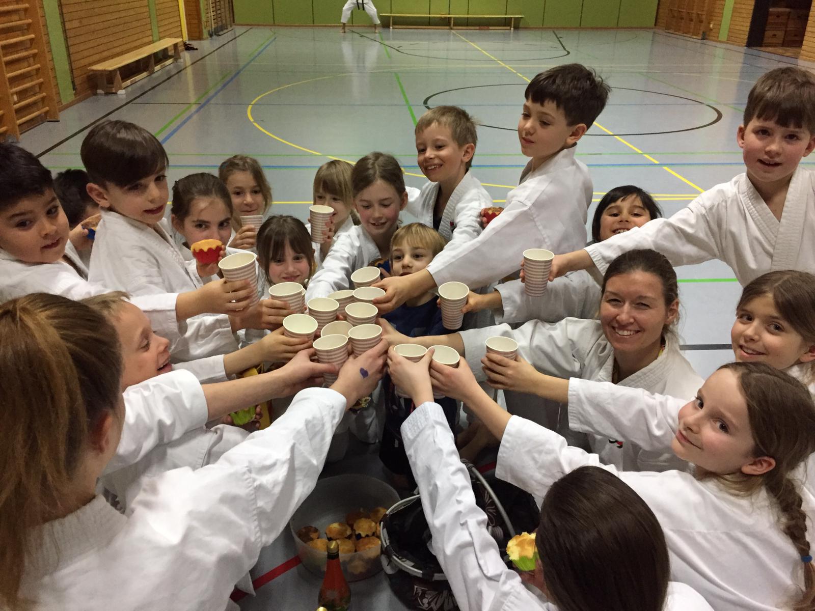 Die Erfolge wurden am nächsten Trainingstag mit den Karatekindern nachgefeiert