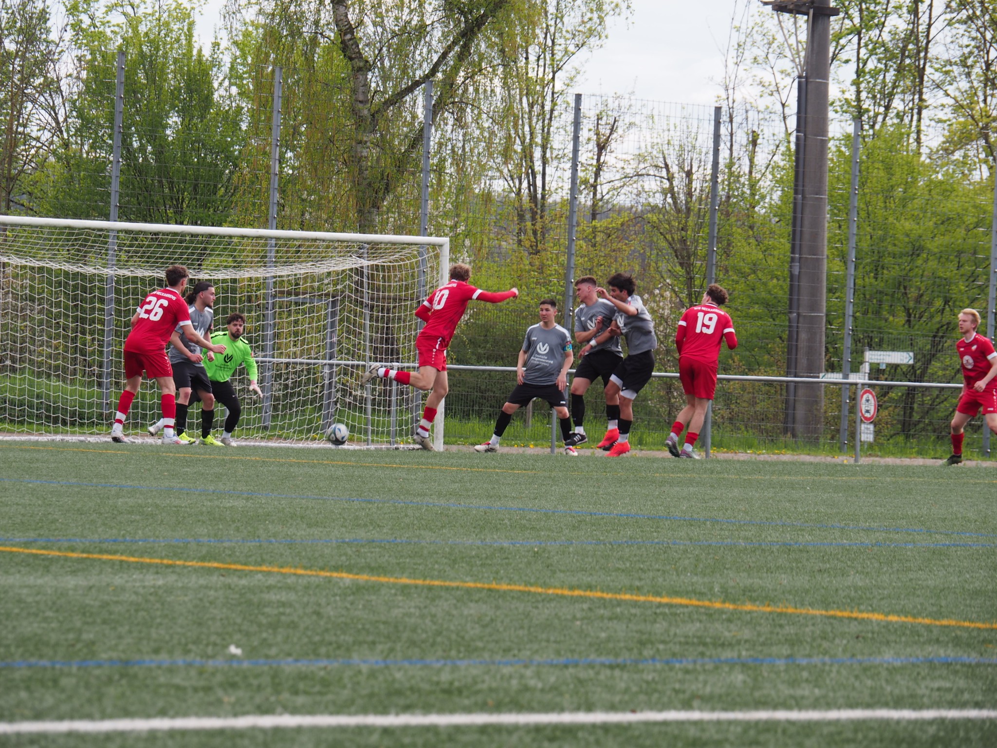 Asim kam für Fatih ins Spiel und wurde sofort Teil eines Tores für den Fussball-Olymp. An der Grundlinie links vom Tor leitete er einen Freistoß von der rechten Flanke zurück über die gesamte Abwehr, wo Flo Noller in die Mitte köpfte und Flo Scholz die Kugel ins Netz hämmerte. Vier Spieler und kein Bodenkontakt des Balles!